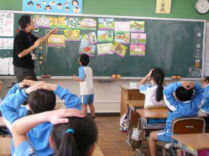 最初はジュリアン先生が問題を出してくれましたが,後半は子供達が前に出て,問題を出しました。楽しみながら動物の名前を覚えることができました。