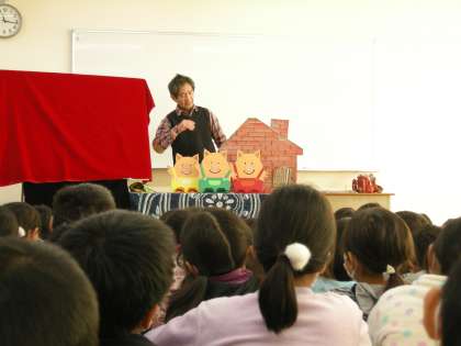 かわいい人形で楽しい劇がテンポ良く繰り広げられ,終始笑いが絶えませんでした。