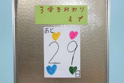 【1年生】3学期になって1か月が過ぎました。 公開日 2017/02/13 更新日 2017/02/13 1年生のページ 3学期になり1か月近くが過ぎました。あっという間の3学期,各クラスでカウントダウンカレンダーを掲示しています。修了式まで,登校日が30日切りました。1年生のまとめを今後もしっかり行って,素敵な2年生になれますように。 帰りの会の様子をご覧下さい。日直さんが上手に帰りの会を進行してくれます。