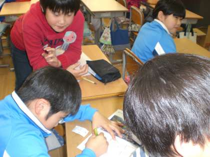 今日の昼休みに,1〜5年生が縦割り班で集まり,6年生に寄せ書きを書きました。5年生の様子を見ると,低学年に優しく接したり,字の間違いがないかよく確認したりと,リーダーとしてしっかり活動できていました。来月は6年生に寄せ書きをプレゼントします。感謝の気持ちをはっきりと伝えられると良いですね。