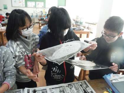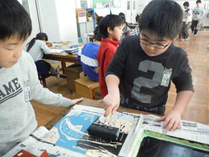 【4年生】版画刷り 公開日 2017/02/21 更新日 2017/02/21 4年生のページ 版画彫りが進み,紙に刷り始めました。 インクをつけ,ばれんで刷り・・・できた作品に思わず感嘆の声をもらしていました。 ここから更に良い作品になるよう,また彫り進めていきます。