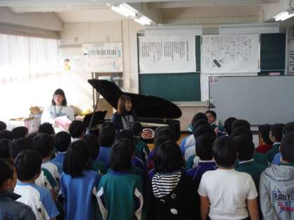 【4年生】6年生を送る会に向けて 公開日 2017/02/22 更新日 2017/02/22 4年生のページ 3月3日に行われる6年生を送る会に向けて,学年の発表練習を行いました。 4年生は,合唱と合奏を行います。 音楽室中に響く,力強い声で歌うことができました。