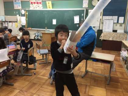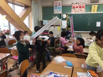 図工の時間にびっくり箱を作りました。みんな夢中で制作していました。