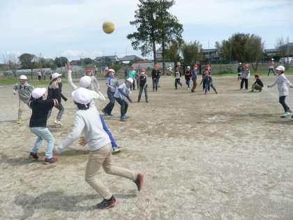 昼休みには,4年生の子供たちも元気に外遊びを楽しんでいます。1組も2組もいっしょになってドッジボールを楽しんでいました。