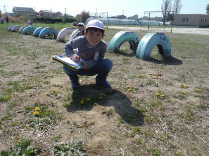 【3年生】理科生き物探し 公開日 2017/04/14 更新日 2017/04/14 3年生のページ 理科の時間に春の生き物探しをしました。春の暖かな日差しの中,夢中で生き物探しをしました。きれいな桜の下でお花見をしたり,蛙をみつけたりしました。色や形,大きさに着目して見つけたよカードに記入しました。