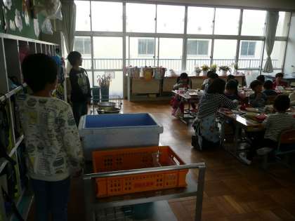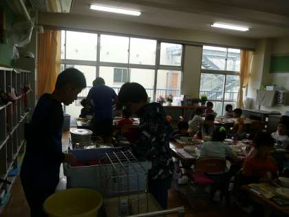 6年生・・・給食もまかせて 公開日 2017/04/17 更新日 2017/04/17 6年生のページ 今,6年生は,朝の時間や給食,掃除の時間にも1年生のお手伝いに行っています。自分から1年生に声をかけるなど,今日も,給食の時間に機転を利かせてよく働いていました。最上級生として頼もしい限りです。