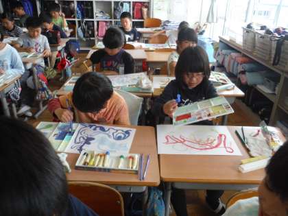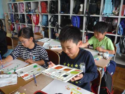 【3年】色・形 いい感じ 公開日 2017/05/02 更新日 2017/05/02 3年生のページ 絵の具を混ぜたり,水の量を変えたりすると,いろいろな色ができました。つくった色でかきながら,自分の形を見つけました。