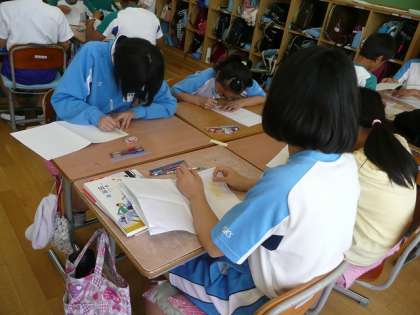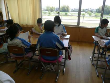 今日は、国語の時間に、完成した随筆を読み合いました。付箋に、随筆のよかったところを記入していきました。「自分の考えがよく伝わってきました。」・・・はられた付箋をうれしそうに読んでいました。