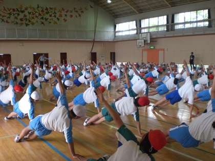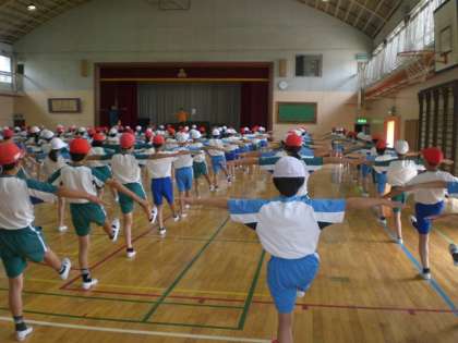 今日は,初めて,組み体操の練習をしました。5年生に模範演技を見せるときには,堂々として頼もしさを感じました。これから練習を重ねて,運動会当日には最良の演技を披露できるようにがんばりたいと思います。
