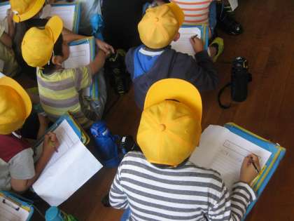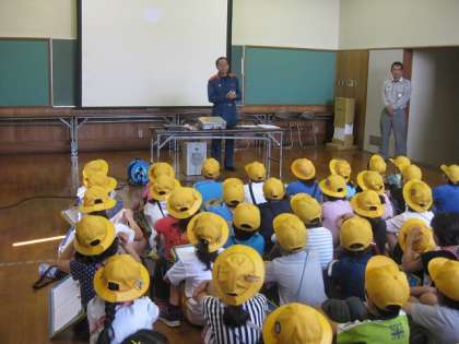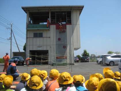 消防署見学では,けが人を救出する訓練を見ました。本物同様の迫力に,集中し,どきどきしながら見入っていました。