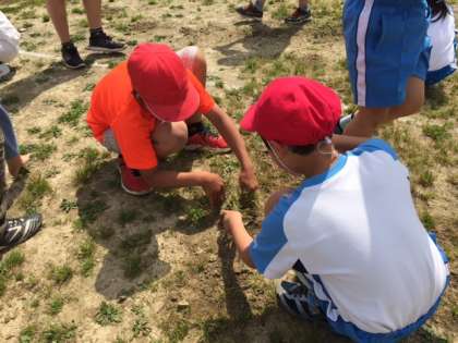 5年生がんばりました!縦割り草取り。