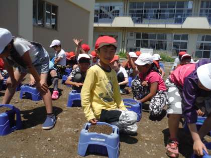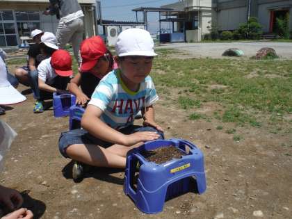 優しく土をかけて「大きくなあれ」とお願いしていました。芽が出るのが楽しみです。