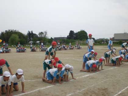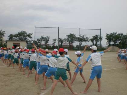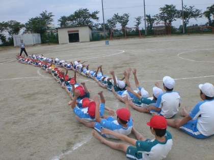 今日は,初めて外で組み体操の練習を行いました。移動の仕方や立ち位置を確かめました。体育館で練習するのとはまた違う緊張感が感じられました。皆で力を合わせて,最良の演技が披露できるよう練習をがんばります。