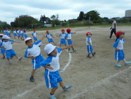 5月17日(水),3校時には体育館で玉入れ等の練習,4校時には2年生と一緒に校庭で表現「みんなでス・マ・イ・ル」の練習をしました。一人一人が,練習に熱心に取り組みました。明日も,運動会練習があります。
