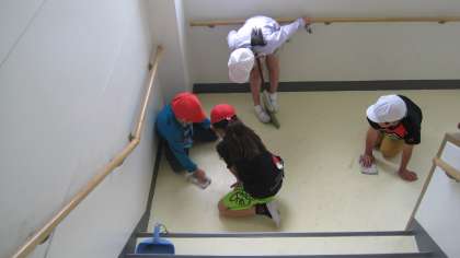 【3年生】清掃活動も頑張っています。 公開日 2017/05/18 更新日 2017/05/18 3年生のページ 毎日,運動会の練習を頑張っていますが,清掃活動も頑張っています。3年生では,新しく「階段掃除」に取り組んでいます。掃除の後の階段は,いつもピカピカです。