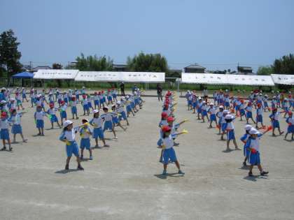 今日のダンスの練習は,本番と同じようにカラー軍手をつけて行いました。1組は青,2組は黄色,3組は赤い軍手です。