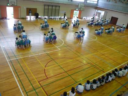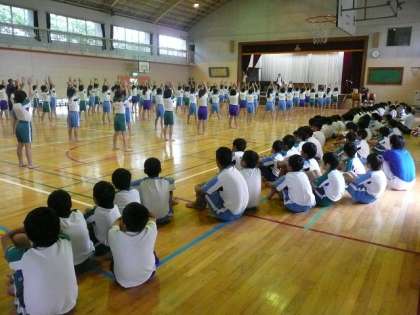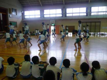 今日は,雨のため,体育館で組み体操の練習をしました。5年生と6年生で,お互いに演技を見せ合いました。「見られている」ということを意識して,心のこもった演技をすることができました。当日もすばらしい演技が披露できるように,みんなで心を一つにしてがんばりたいと思います。