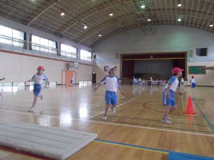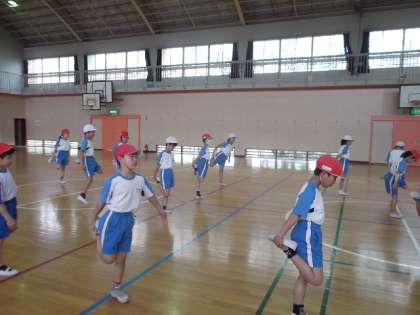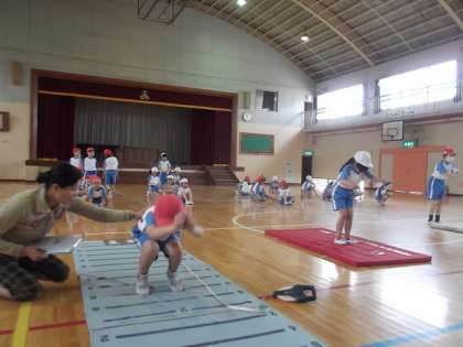 今,体育では,体力テストに向けて練習をしています。今日は,立ち幅跳びの練習をしました。体力優良賞を目指し,「ここまではがんばりたい。」という目標をもって,みんな,がんばっています。