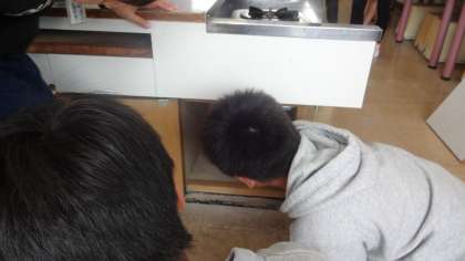 【5年生】家庭科室で… 公開日 2018/04/25 更新日 2018/04/25 5年生のページ 初めて家庭科室で家庭科の学習をしました。ガスこんろの使い方を学習しました。元栓を開けて火をつける,火を消してから元栓を閉める,をグループで確認しながら行いました。