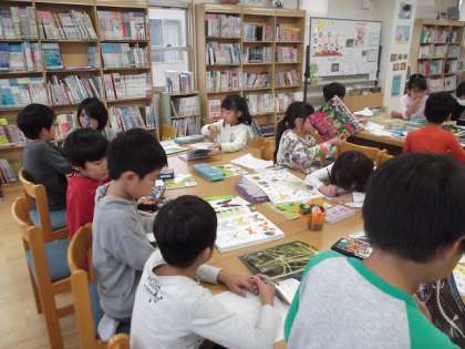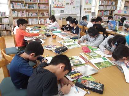 今日の理科は,図書室で活動しました。先週,自分が観察した生き物を図鑑で調べました。アマガエルやタンポポなど,図鑑をみながら調べ,くわしく絵を描いていきました。新しい発見もあったようです。