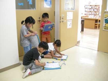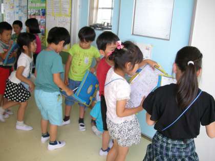【1年生】学校探検 公開日 2018/05/17 更新日 2018/05/17 1年生のページ 8日に2年生に教えてもらって学校探検に行った1年生,今度は1年生だけで探検に行きました。教室の前には,文字が書いてあって全部並べると一つの言葉になります。暗号を解読するために,グループで協力しながらはりきって探検する姿が見られました。