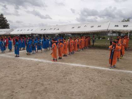 今日は,初めてはっぴを着て「よさこいソーラン」を踊りました。カラフルなはっぴを着ると,気持ちもぐっとあがるようです。いつも以上に気合いを入れて踊っていました。
