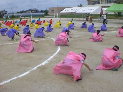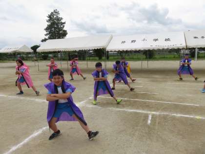 本日のソーラン節は,はっぴを着ての練習でした。各クラス色とりどりのはっぴをまとい,本番に向けて熱い練習が行われました。今日は力の入った練習でした。