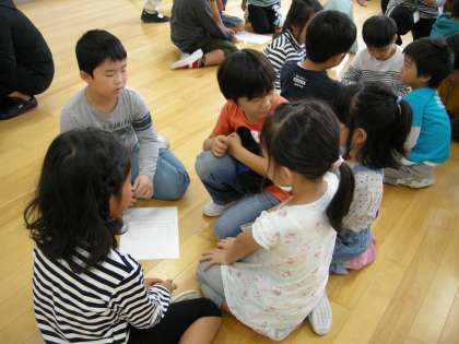 10月4日の校外学習の事前指導を行いました。1,2組合同の5人グループで,グループ名やめあてや役割を決めました。休み時間には「私は〜係になったよ。」「ぼく,新しいお友達ができたよ。」と嬉しそうに話していました。