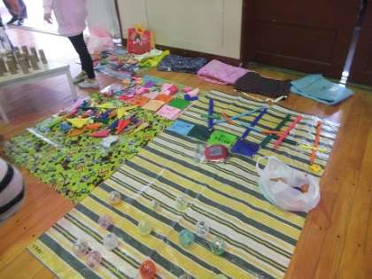 用意したおもちゃは,どれも好評でした。手作りのおみやげをたくさん持って帰ってもらいました。