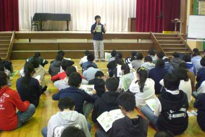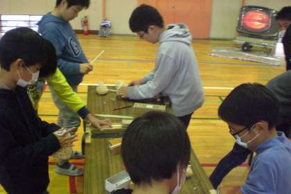 先日本校の体育館にて,森林林業体験学習が行われました。私たちの身近な自然環境についての講話を聞いたり,木材の端材を活用した箸作りを行ったりしました。箸作りは友達と協力して一生懸命作っていました。木材の端材から素敵なものが作れることにも感動していました。自然に感謝ですね。
