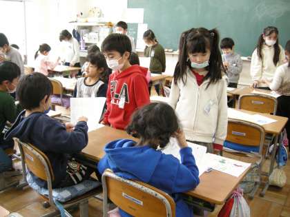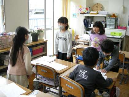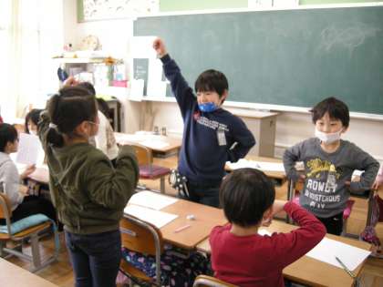 国語で学習している「じゃんけんやさん」をひらきました。自分たちで考えた新しいじゃんけんを説明して,実際に友達とやってみました。みんな,とても楽しそうに活動していました。
