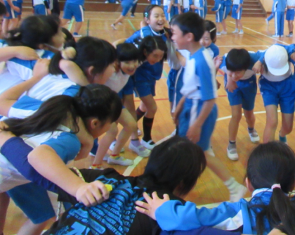 2月6日,なわとび集会では,お忙しい中ご参観ありがとうございました。保護者の方々の応援があり,今までの練習の成果を発揮することができました。「オー」と声を掛けたり,円陣を組んで,心を1つにして頑張りました。