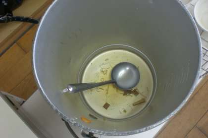 給食の残食を減らすため,5年生全体で頑張っています。たくさん食べられる人には配膳の量を増やすなどの工夫をしています。,写真は,片付け前の2組の食缶の様子です。残食0の達成は難しかったのですが,写真のとおり食べ残しがほとんどなくなりました。無理のない範囲で,これからも取り組んでいきたいと思います。