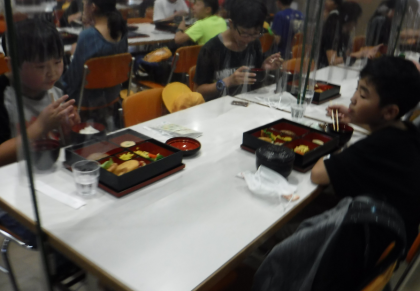 東照宮を見学後、富士屋観光センターで昼食をとりました。畳敷の部屋では間隔を広く取って,テーブル席では,ビニールで真ん中に仕切りをし,感染予防に配慮した部屋でおいしい昼食をいただきました。昼食後は,「おばあちゃんに買っていくんだ。」「家族にはこれがいいかな。」とお土産を楽しそうに買っていました。