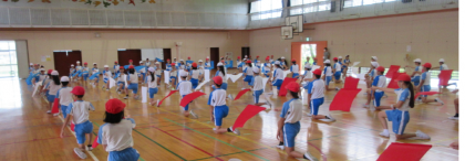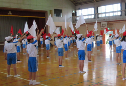 体育では,フラッグを使った表現運動に取り組んでいます。「コードブルー」「ワタリドリ」「ともに」の3曲に合わせて,組体操の1人技とフラッグを使った表現運動を行います。頑張っている6年生。10月8日の発表が楽しみです。