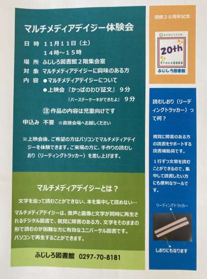 また、マルチメディアデイジーの体験もできますので、ぜひ、ご参加くださいませ。