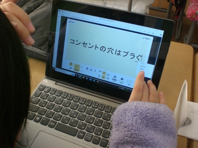 今日は、「あなのやくわり」という単元の学習です。身の回りのものにあいている「あな」にはどんな役割があるのかを学習しています。わかったことをパソコンを使ってまとめています。どんなふうにまとめれば、発表するときに効果的なのかを考えながら作っています。発表が楽しみですね。
