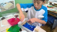 ほうれん草とツナとゆで卵のサラダをつくっています。5年生は男子が多いのですが、男子の包丁さばきもとっても上手です。もちろん女子も調理経験者が多くて、切る、ゆでる、洗うを同時進行でてきぱき進めていました。出来上がったサラダは先生方にもおすそ分けをいただきました。おいしかったです!ごちそうさまです。