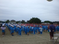 午前に降っていた雨もやみ、午後は運動会の全体練習です。今日は開閉会式、応援合戦の...