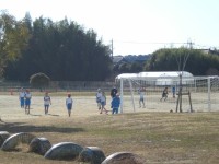 冬晴れの中、サッカーの学習をしています。気温が低いですが、みんな声を出して元気い...