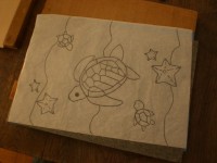 木の板に自由にデザインをして色を付けます。完成したら、糸のこでパーツごとに切り分...