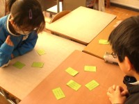 算数で学習した10より大きい数。今日は10~90までの数ビンゴに挑戦。教室内外に...
