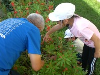秋がだんだん深まってきました。1年生は生活科で秋の虫をさがしています。休み時間も花壇の中をのぞいたり、校庭を歩いたり。今日は大きなバッタが見つかりました。