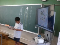 普段お世話になっている家族に向た思いを、漢字一文字を使って伝えます。どうしてその漢字を選んだのか、一人一人が理由を述べなかな感謝の言葉を発表します。ほっこりとした気持ちになる授業でした。