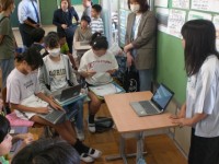 総合的な学習の時間で調べてきた内容の中間発表会。タブレットで資料を作成し、それを見せながら発表します。食品ロスに関するクイズを出題する子もいて、工夫が感じられますね。発表内容も分かりやすく、深く考えて...