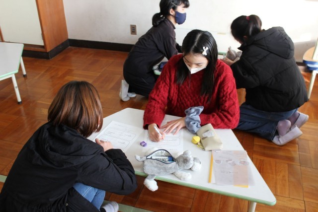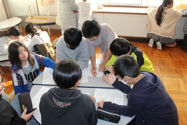 「どんな大人になりたいか」という質問に対して、友達と話しながら真剣に考え、一生懸命に言葉にしようとする子どもたち。