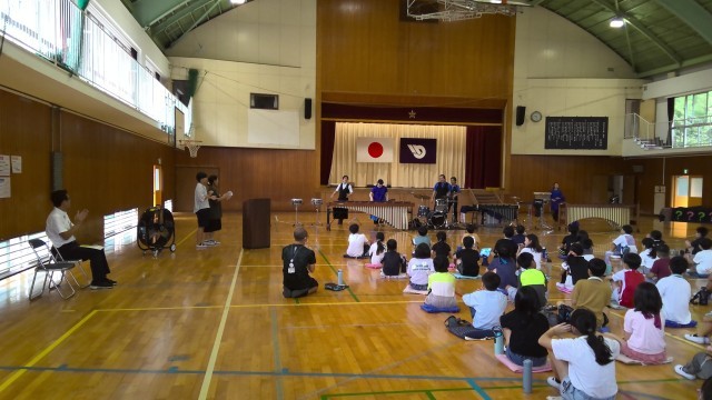 打楽器による芸術鑑賞会 公開日 2024/09/05 更新日 2024/09/05 6年生 打楽器による芸術鑑賞会が行われました。司会と代表のあいさつを任され、しっかりと務めることができました。迫力ある演奏に、自然と体が動いていました。 いいね(1)