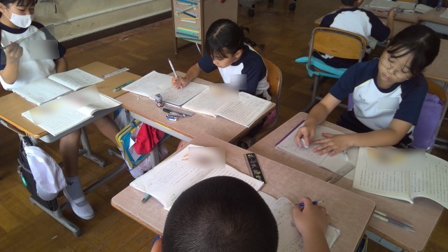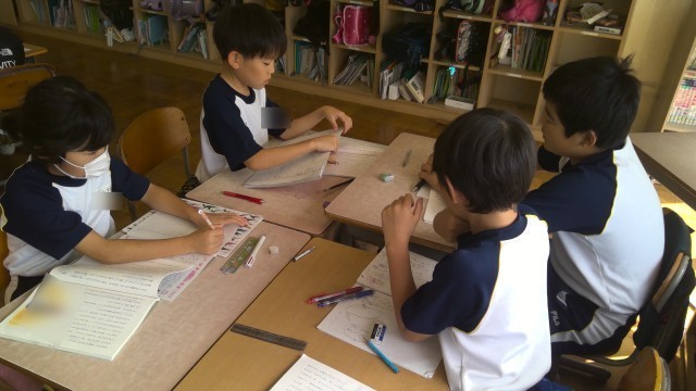 4年生の国語では「一つの花」という物語を学習しています。今日は、「一つだけ」を口癖にするわが子「ゆみ子」への両親の思いを考えました。両親の思いの根拠となる言動に線を引きながら、考えました。グループでは「この表現からこのような思いが感じ取れました」と自分の考えを共有しました。戦争のはげしかったころの話なので、時代背景を知るためにも、読み聞かせなどをおこなっています。どのような時代だったのか興味を持つ児童が多く、自分から戦争に関わるお話を読んでいる姿を多く見ます。より理解が深まりますね。