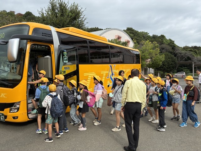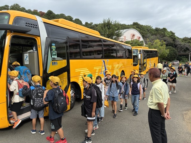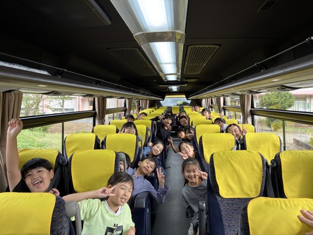 4年生全員が元気に登校し、予定どおりの時間に学校を出発できました。実行委員の出発式での進行もとてもよくできました。今回の校外学習のスローガンは、「茨城県の芸術の秋を楽しもう!」です。これから笠間に向かい、笠間焼きに挑戦します。とても楽しみです。