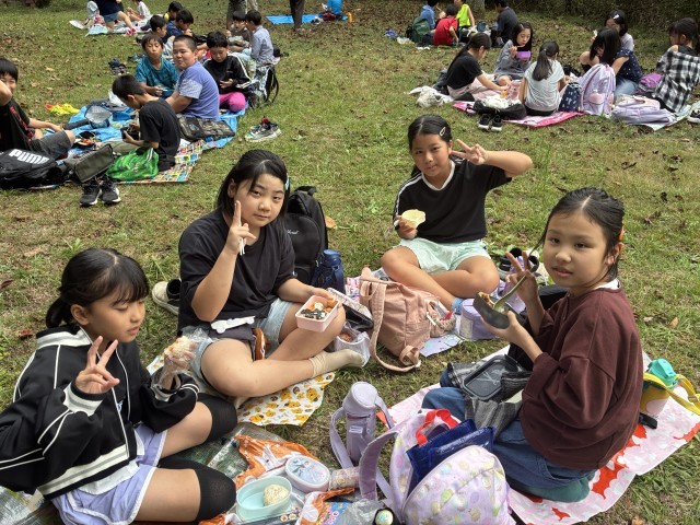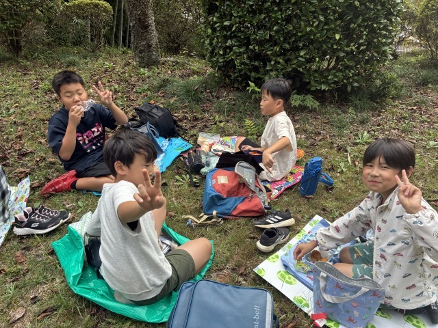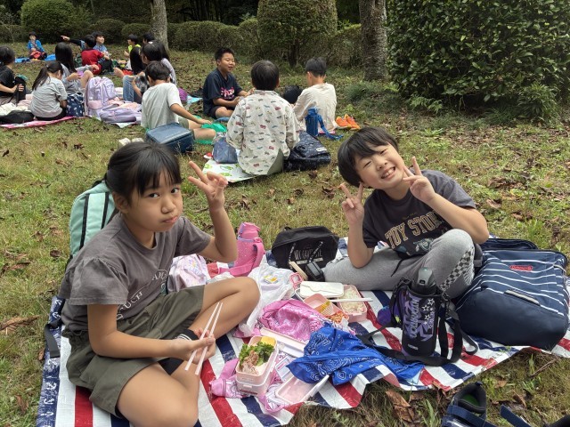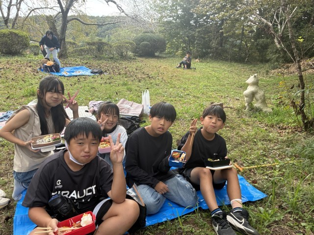 お待たせのお弁当の時間です。満面の笑顔でお箸がすすんでいきます。朝早くからの手作りお弁当の準備をありがとうございました。幸せな時間をありがとうございました。